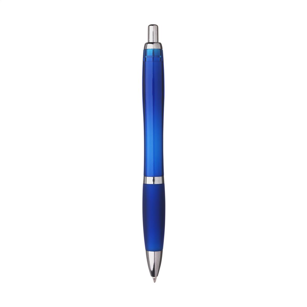 Blauschreibender Kugelschreiber. Das solide Gehäuse besteht aus recyceltem ABS. Mit Druckknopf, Metallclip und silberfarbenen Akzenten. RCS-zertifiziert. Recyceltes Material insgesamt: 78%.