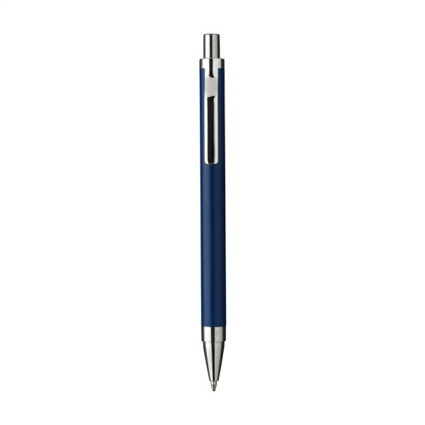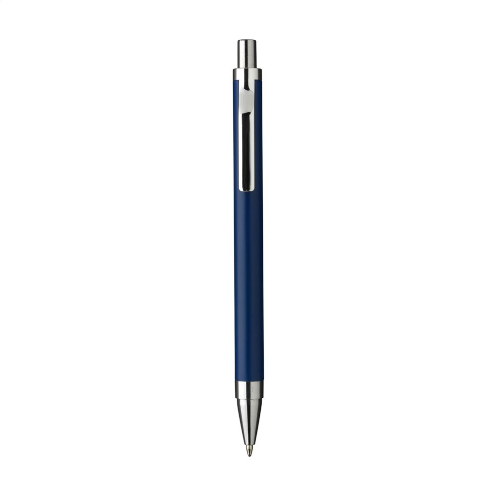 Modischer, blauschreibender Kugelschreiber mit einem Gehäuse aus 100% recyceltem Aluminium mit mattem Finish. Mit formschönem Metallclip und Gehäuse aus einem Stück. RCS-zertifiziert. Durch die Verwendung von recyceltem Aluminium werden bei der Herstellung dieses Produkts weniger neue Rohstoffe verwendet. Das bedeutet weniger Energieverbrauch und weniger Wasserverbrauch.