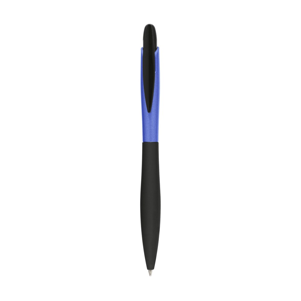 Blauschreibender, schlanker Kugelschreiber mit grifffestem, gummiertem Vorderteil. mehr