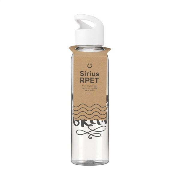 Luxuriöse Wasserflasche aus klarem RPET. Mit praktischem Schraubverschluss aus Kunststoff. Auslaufsicher und wiederverwendbar. Nicht spülmaschinengeeignet. Inhalt 650 ml. GRS-zertifiziert. Gesamtes recyceltes Material: 82%.
