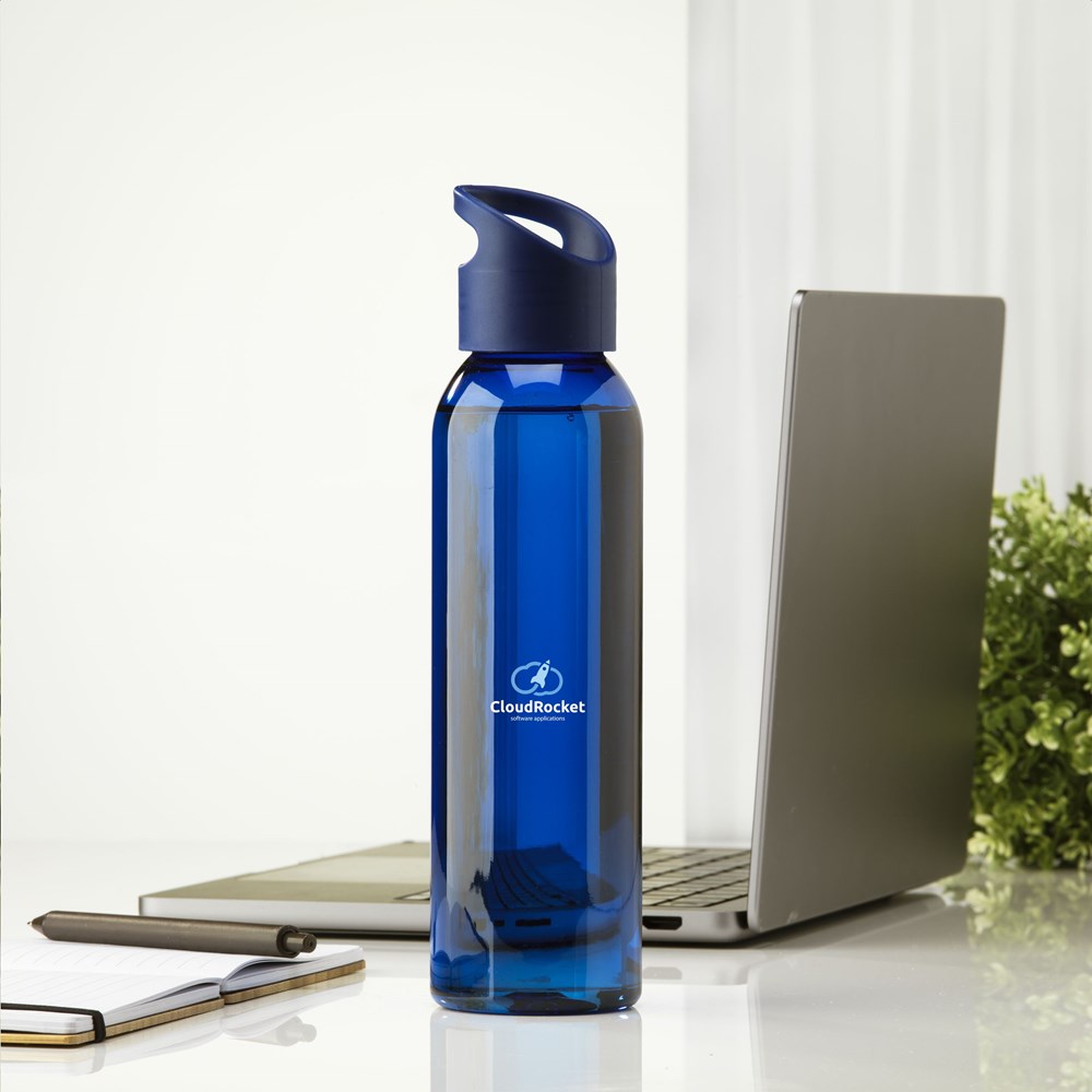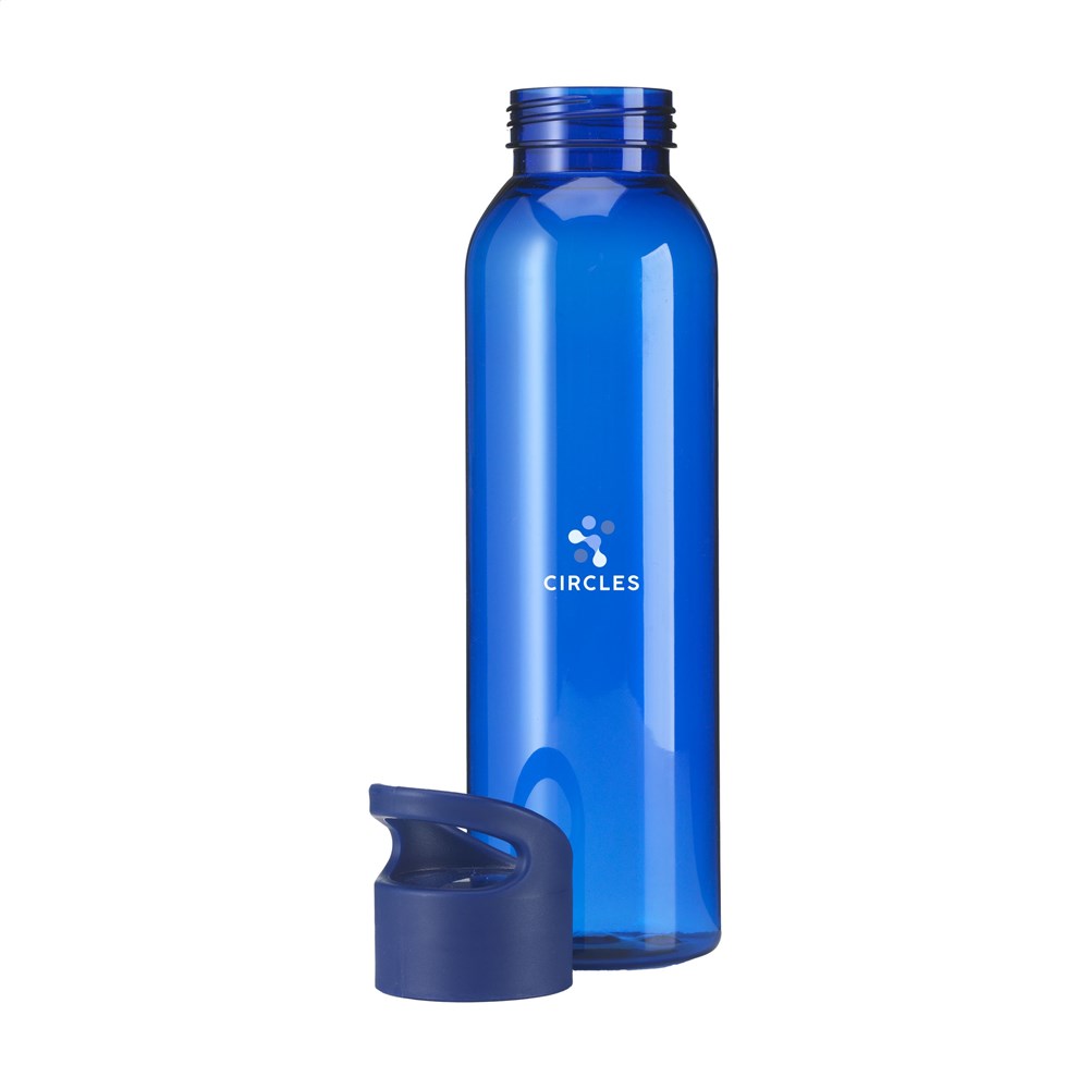 Luxuriöse Wasserflasche aus klarem RPET. Mit praktischem Schraubverschluss aus Kunststoff. Auslaufsicher und wiederverwendbar. Nicht spülmaschinengeeignet. Inhalt 650 ml. GRS-zertifiziert. Gesamtes recyceltes Material: 82%.
