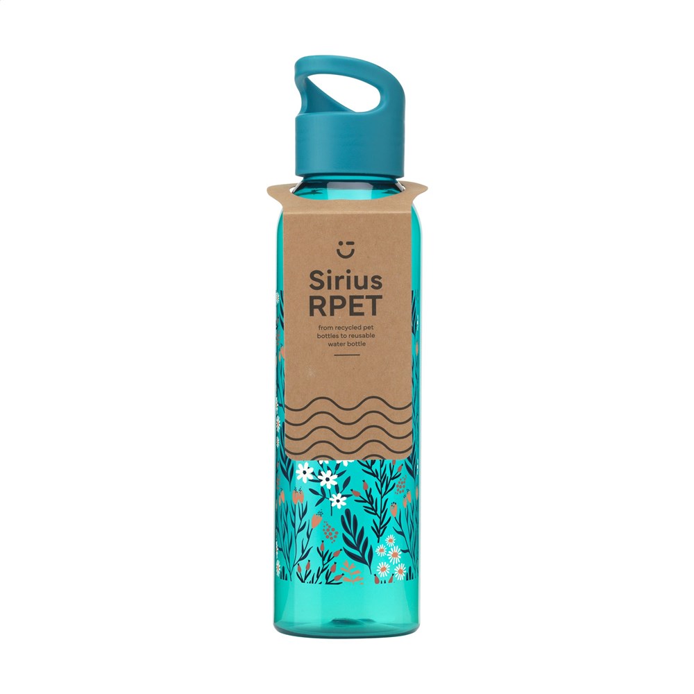 Luxuriöse Wasserflasche aus klarem RPET. Mit praktischem Schraubverschluss aus Kunststoff. Auslaufsicher und wiederverwendbar. Nicht spülmaschinengeeignet. Inhalt 650 ml. GRS-zertifiziert. Gesamtes recyceltes Material: 82%.