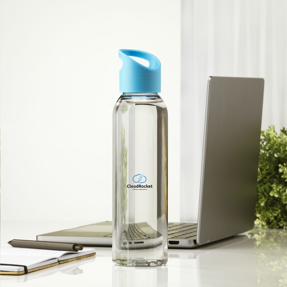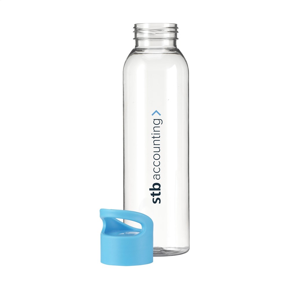 Luxuriöse Wasserflasche aus klarem RPET. Mit praktischem Schraubverschluss aus Kunststoff. Auslaufsicher und wiederverwendbar. Nicht spülmaschinengeeignet. Inhalt 650 ml. GRS-zertifiziert. Gesamtes recyceltes Material: 82%.