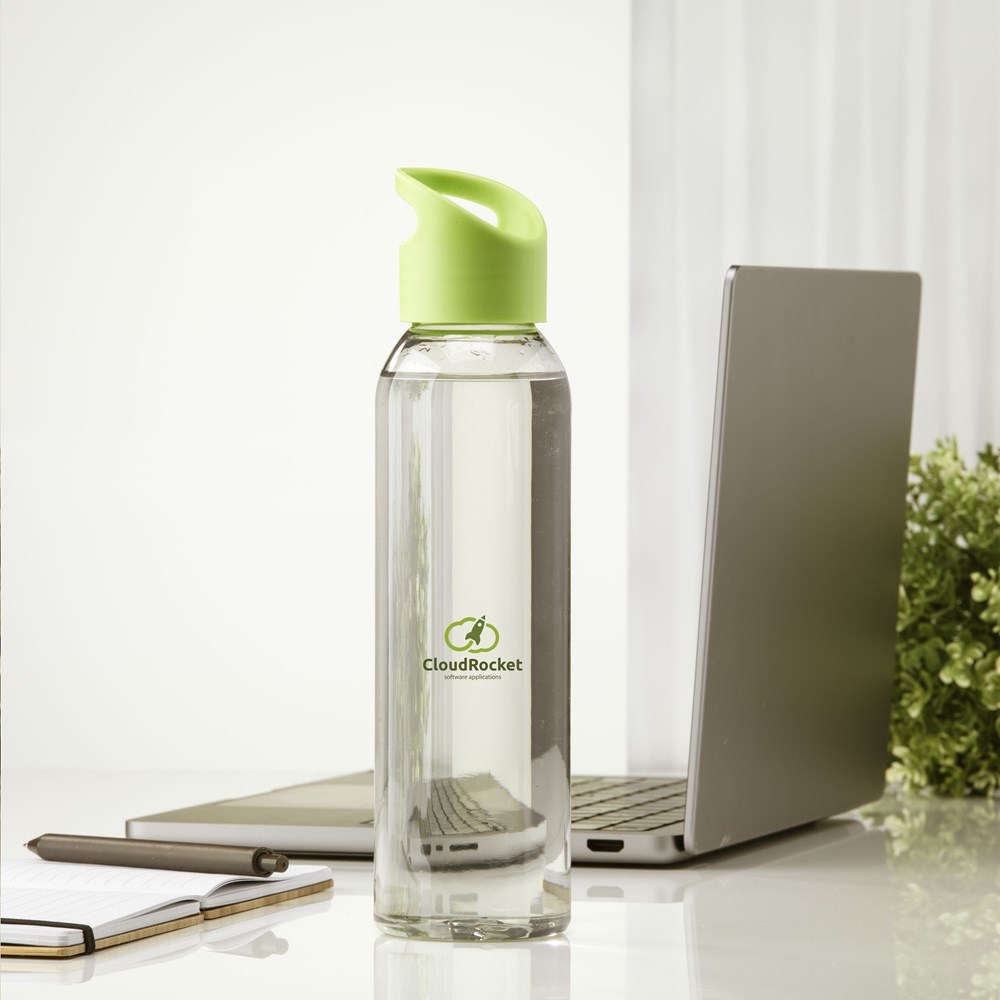 Luxuriöse Wasserflasche aus klarem RPET. Mit praktischem Schraubverschluss aus Kunststoff. Auslaufsicher und wiederverwendbar. Nicht spülmaschinengeeignet. Inhalt 650 ml. GRS-zertifiziert. Gesamtes recyceltes Material: 82%.