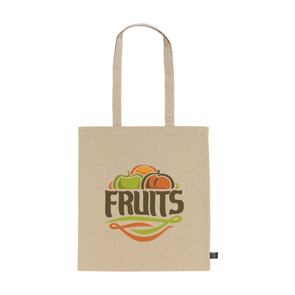 Einkaufstasche aus 80% recycelter Melange-Baumwolle und 20% recyceltem Polyester (180 g/m²). Mit langen Griffen. GRS-zertifiziert. Fassungsvermögen ca. 8 Liter. Diese Baumwolle ist recycelt. Daher kann die Farbe je nach Produkt variieren.