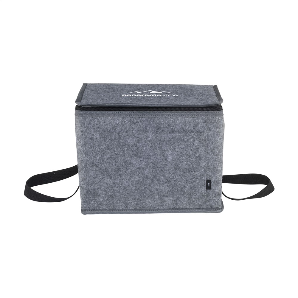Großzügige Kühltasche aus RPET-Filz. Auskleidung aus 100% PEVA. Mit Trageriemen. GRS-zertifiziert. Recyceltes Material insgesamt: 63%. Fassungsvermögen ca. 14 Liter.