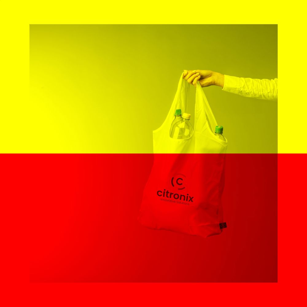 Geräumige, faltbare Einkaufstasche mit Doppelgriff aus 190T-RPET-Polyester. Schnell zusammenklappbar im Beutel auf der Innenseite der Tasche und leicht zu transportieren. GRS-zertifiziert. Gesamtes recyceltes Material: 95%. Maße gefaltet: 8 x 8 x 6 cm. Fassungsvermögen ca. 10 Liter.
